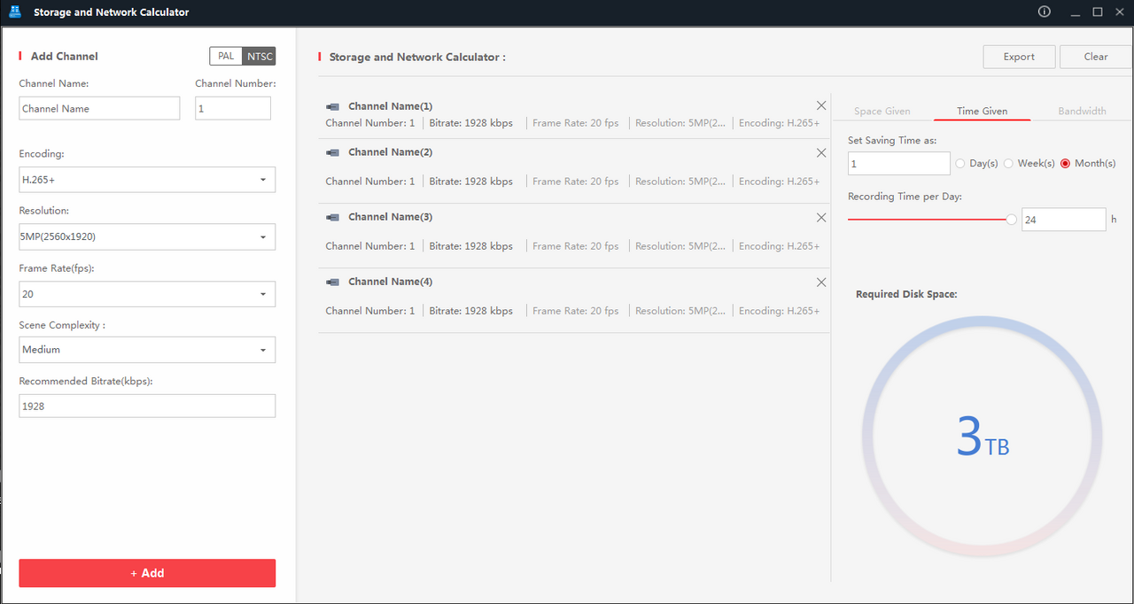 هایک ویژن نرم افزار Storage and Network Calculator را برای محاسبه ظرفیت هارد مورد نیاز سیستم های نظارتی مشتریان ارائه کرده است. از طریق این نرم افزار به راحتی می توانید محاسبه کنید با داشتن چه تعداد دوربین و شرایط ضبط مشخص چقدر حافظه نیاز است و تغییر در شرایط ضبط می تواند تا چه حدودی در صرفه جویی هزینه های ذخیره سازی موثر باشد. البته شما می توانید این محاسبه را به صورت انلاین نیز انجام دهید که با جستجوی “hikvision calculator tools” می توانید وارد بخش آنلاین محاسبه هارد دوربین مداربسته در سایت هایک ویژن شوید. همانند نرم افزار می توانید از آن برای محاسبه مدت زمان ضبط و حافظه دوربین استفاده نمایید.